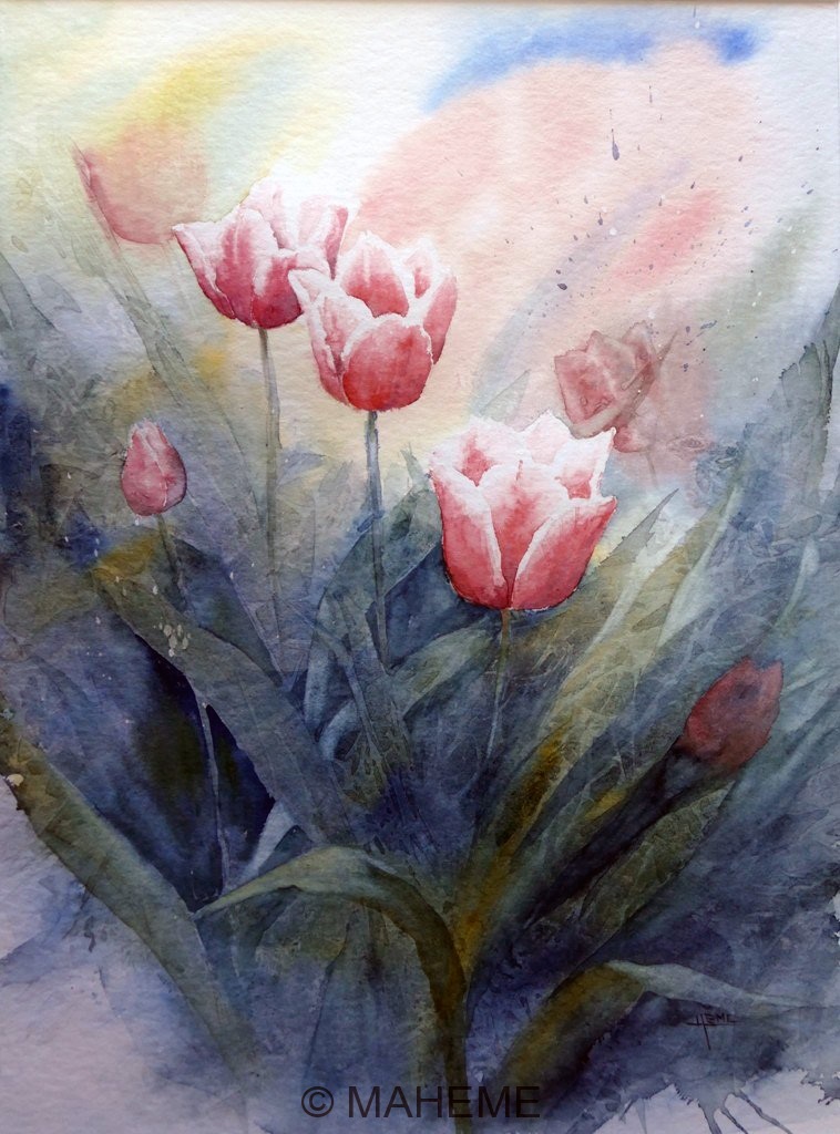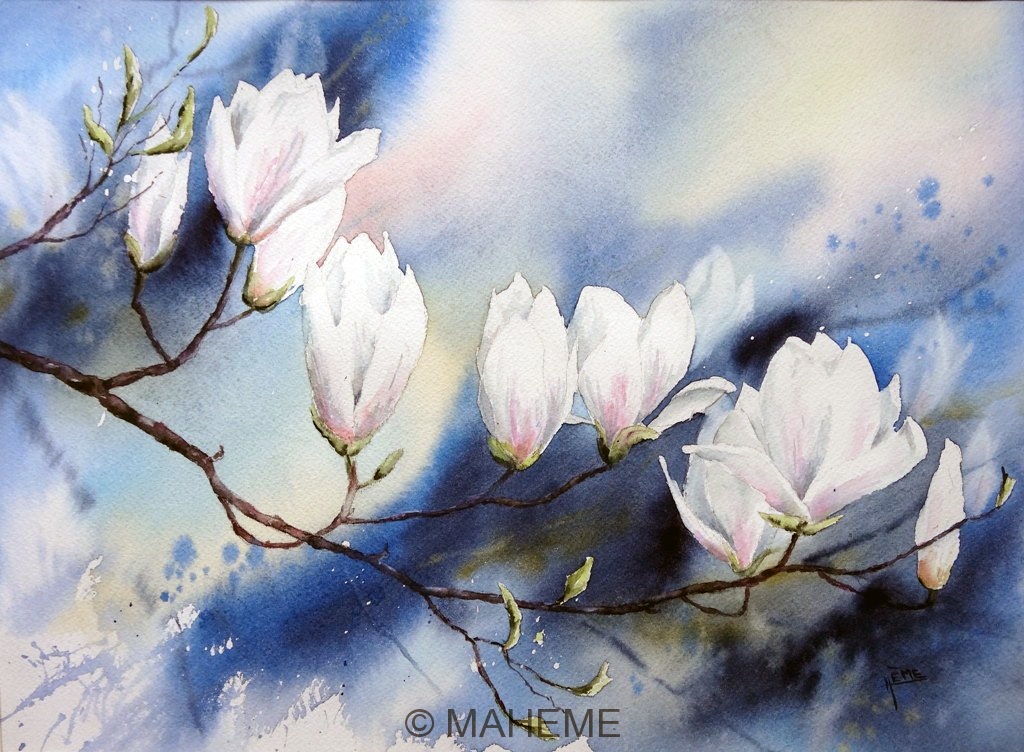 J'apprécie particulièrement l'aquarelle, car j'adore la fluidité entre l'eau et les pigments