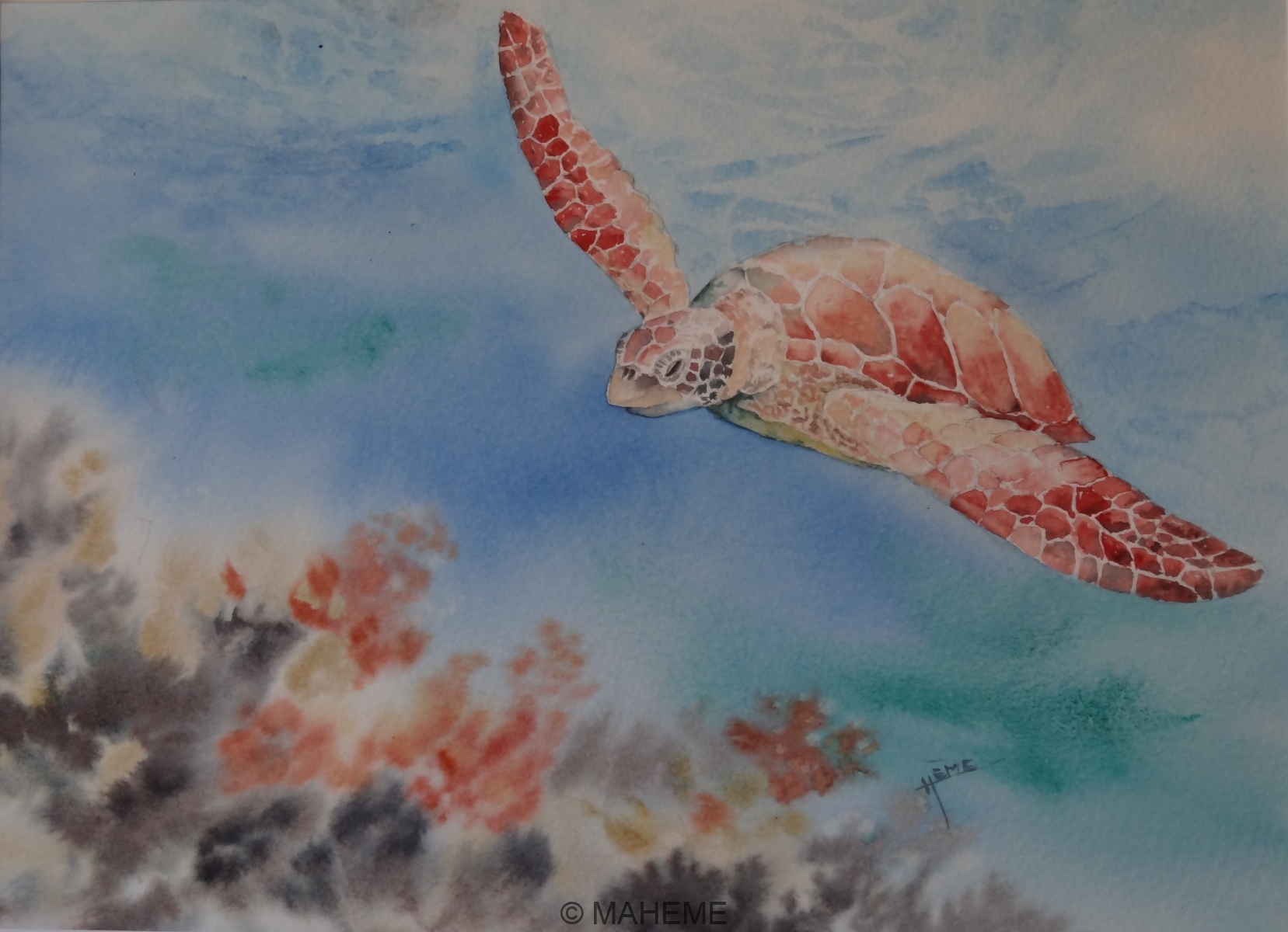 J'apprécie particulièrement l'aquarelle, car j'adore la fluidité entre l'eau et les pigments