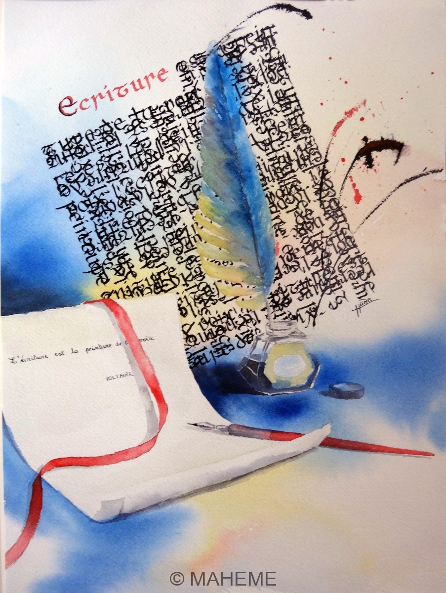 J'apprécie particulièrement l'aquarelle, car j'adore la fluidité entre l'eau et les pigments